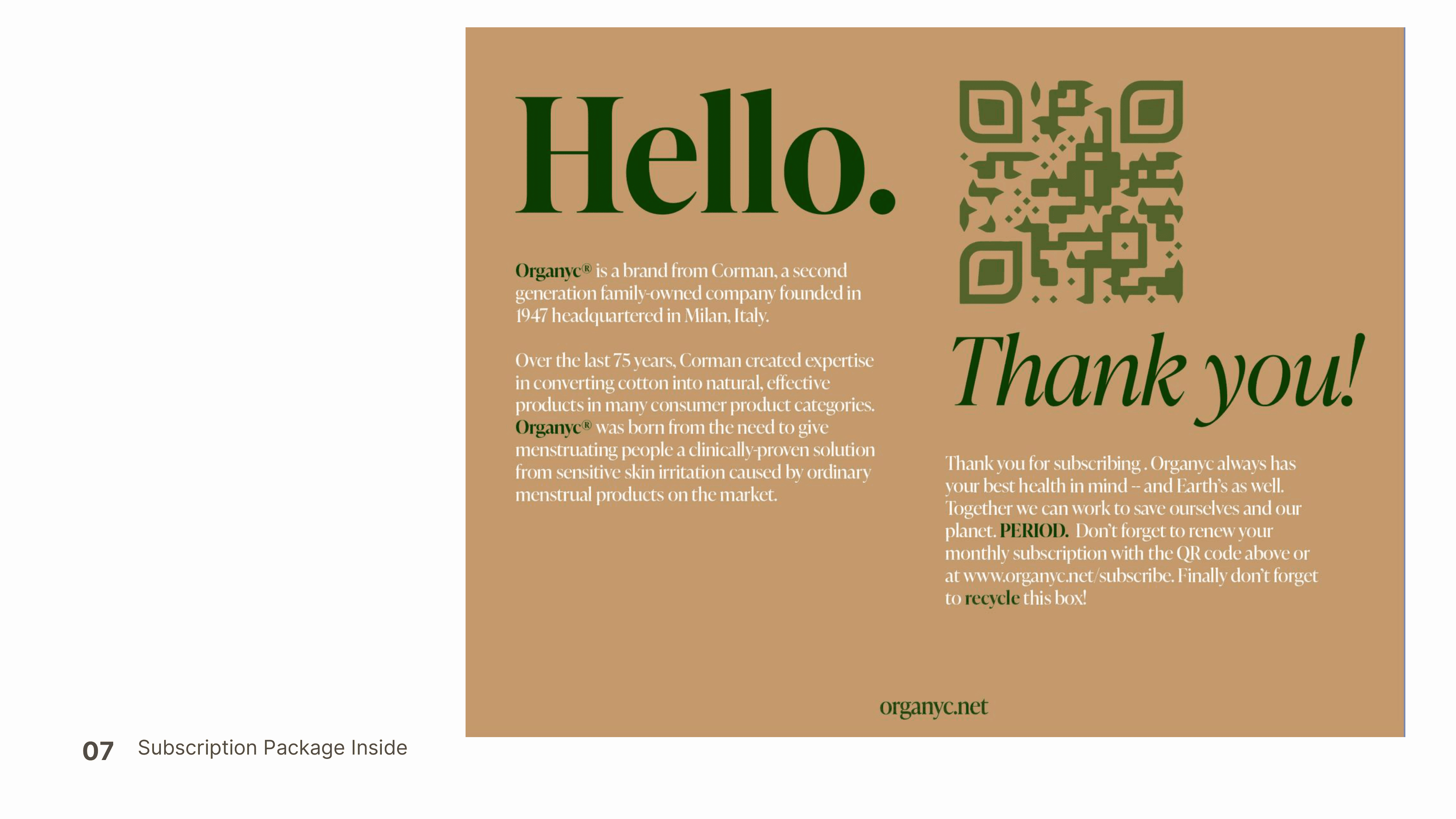 Organyc is a subscription based menstrual package — mailed directly to your doorstep.
