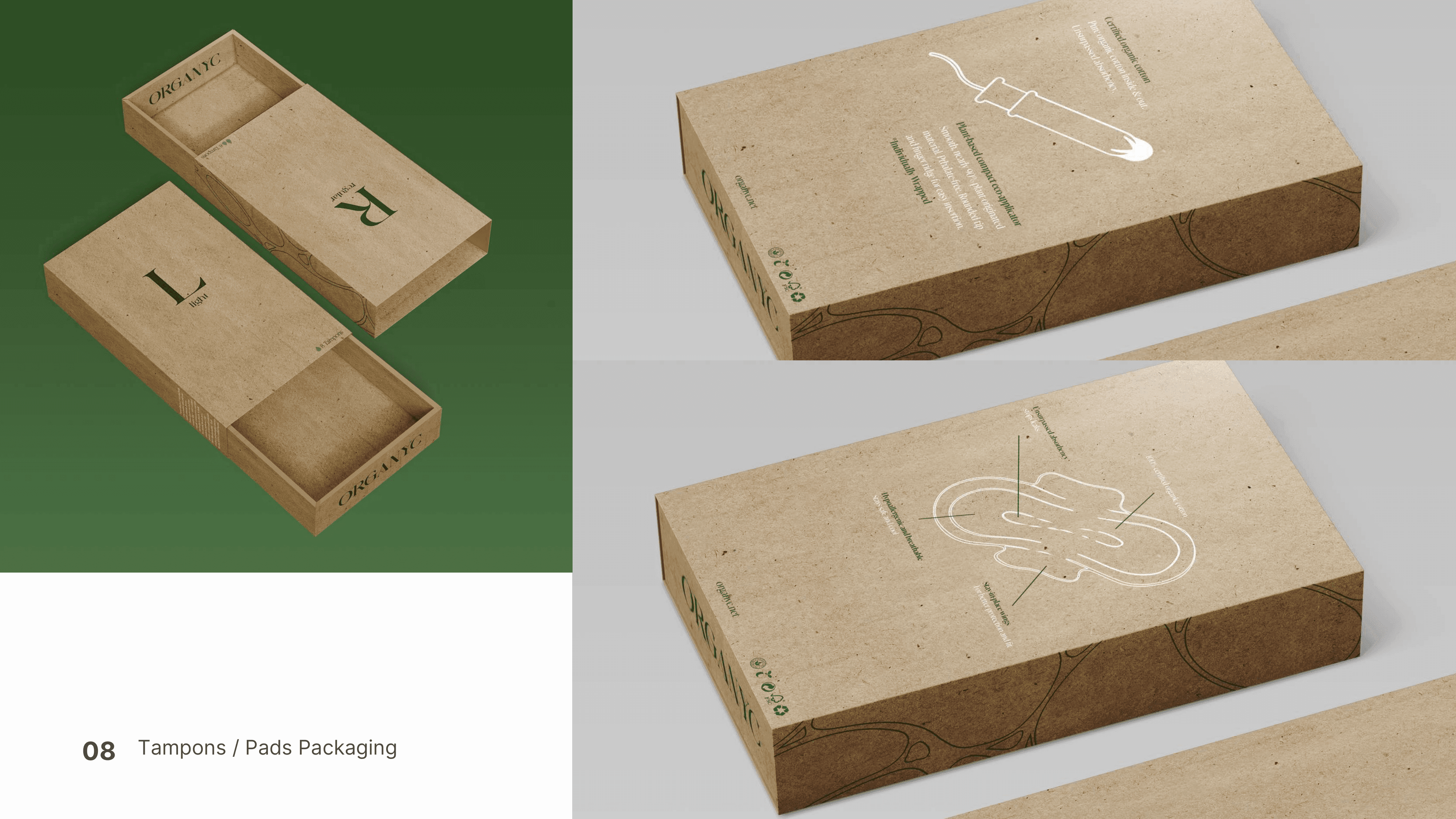 As a sustainable designer, I was inspired to collaborate with Organyc® because of their dedication to aligning values with impactful action. In redesigning their packaging, I incorporated biodegradable corkboard as a sustainable alternative, used biodegradable inks, and eliminated glue, ensuring that every aspect of the packaging is environmentally sound. In addition, I introduced the concept of subscription-based packaging, allowing customers to receive Organyc® products as a customized kit delivered directly to their doorstep. This offers an added level of convenience and personalization, aligning with the needs of consumers while reducing the environmental impact of frequent retail trips.